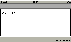 Редактирование поля ввода начинается при нажатии на кнопку выбора (обычно это центральное нажатое положение джойстика). При этом на полный экран мобильного телефона раскрывается форма, подобная той что изображена выше. Внешний вид этого экрана может незначительно отличаться в зависимости от модели телефона. Например, владельцы телефонов фирмы "Nokia" увидят горизонтальные разделительные полосы между строками. Закончить ввод можно нажав кнопку "Запомнить".