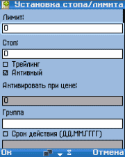 - В поле № группы можно ввести номер группы Stop Loss/Limit Profit ордеров, о значении номера группы написано в разделе "Взаимоотменяемые ордера (группы ордеров)".