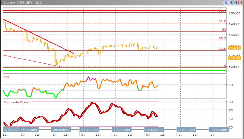 Валюта после долгого движения вниз находится в во флете. Ее боковой канал находится между 23,6 и 38,2% по фибоначчи. Скорее всего пробой канала состоится довольно скоро на вверх, хотя довольны высока вероятность, что этот пробой будет вниз, в случае если доллар начнет укрепляться относительно британского фунта. По Stohastic произошло пересечение и возле серединной линии 50 по направлению вверх, а RSI также направился из похожей зоны вверх. Но ввиду того, что сигналы идут не из зон перекупленности и перепроданности они являются столь сильными и уверенными.
