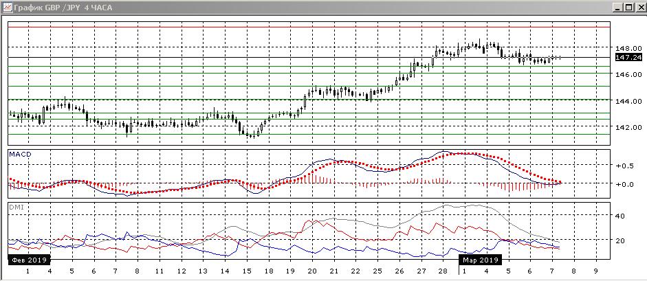 На четырёхчасовом графике снижение приостановилось, и несколько минимумов образовались около 146,60, о замедлилось 146,60. Последовательность снижения относительных и максимумов пары не нарушена. Образование базы на 146,60 может привести к возобновлению роста.