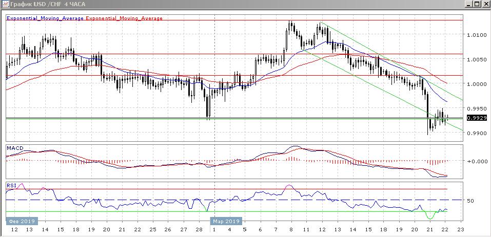В течение торгов в Европе 21 марта доллар США немного отыграл свои позиции против швейцарского франка, приостановив десятидневное снижение. Напомним, что 20 марта, в среду медведи всё же смогли продавить рынок ниже сильного уровня поддержки на 0.9925, но на следующий день им так и не удалось закрепиться ниже этого уровня не смотря на то, что Американец остаётся под давлением с подачи ФРС США . С открытием азиатской торговой сессии инициатива ненадолго вернулась в лагерь быков.