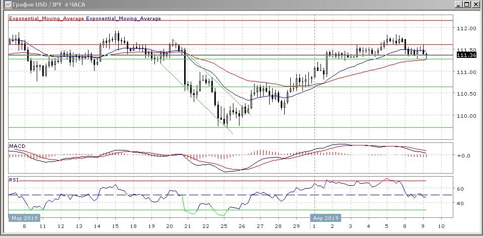 По результатам прошедшей торговой недели пара так и не смогла закрепиться выше текущего уровня сопротивления на 111.60 и цена снова опустилась до уровня поддержки на 111.27. С открытием торгов в Азии 9 апреля быки не оставляют попыток преодолеть текущий уровень сопротивления, но пока безуспешно.