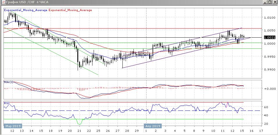 С открытием торгов в Азии данная валютная пара торгуется в пределах уровня поддержки на 1.0000 и уровня сопротивления на 1.0055и пока всё ещё сохраняется в восходящем коридоре. Скользящие средние ЕМА21 и ЕМА55 продолжают расти вверх, однако, если смотреть на индикаторы технического анализа на четырёхчасовом графике, то можно заметить, что покупательский потенциал начал постепенно затухать.