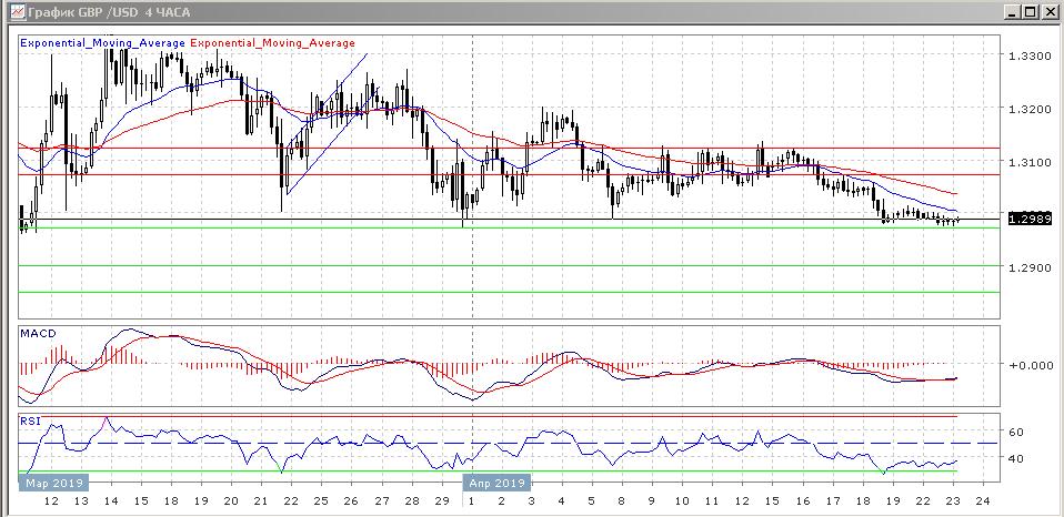 Техническая картина в краткосрочной перспективе явно медвежья. Четырёхчасовой график опустился ниже скользящих средних с периодом 21 и 55 дней. Гистограмма MACD находится ниже своей центральной линии, а индикатор относительной силы тренда RSI подаёт сигнал на продажу, сообщая о сильной, нисходящей тенденции, пока без признаков перепроданности.