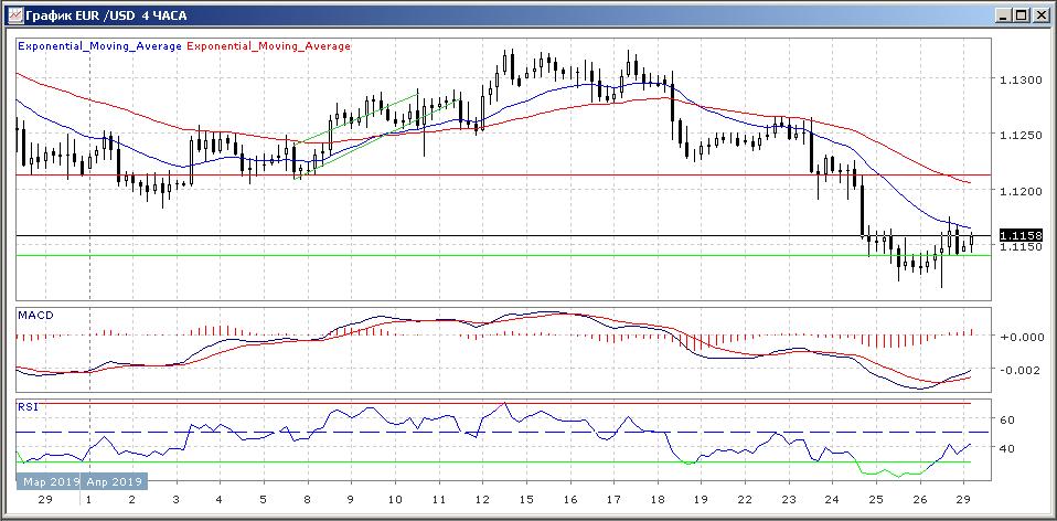 Гистограмма MACD вышла в область выше своей центральной линии и демонстрирует рост. Индикатор относительной силы тренда RSI сообщает о динамической потере рынком медвежьего потенциала.