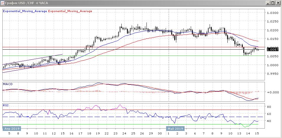 Техническая картина данного рынка на четырёхчасовом графике преимущественно медвежья. Скользящие средние с периодом 21 и 55 дней продолжают опускаться вниз и постепенно расходятся, что говорит об укреплении текущей тенденции.
