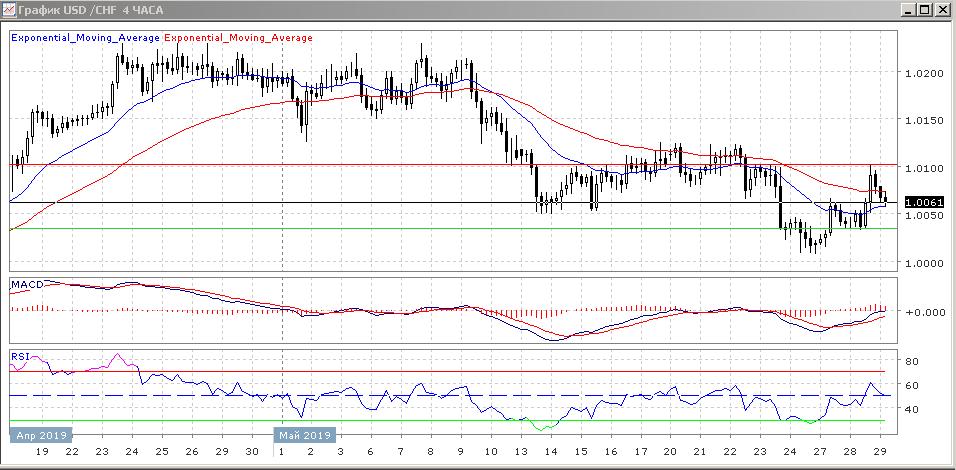 На четырёхчасовом графике скользящие средние с периодом 21 и 55 дней сильно замедлились но и не развернулись вверх, что свидетельствует о смене медвежьей тенденции на противоположную. Но пока, что цена заключена между ними, как промежуточными уровнями поддержки и сопротивления.