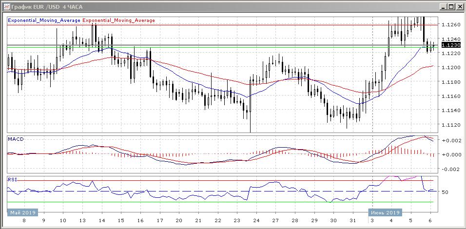 На четырёхчасовом графике скользящие средние с периодом 21 и 55 дней замедлились, но сохраняют заметное расхождение, подавая сигнал на продажу в краткосрочной перспективе.