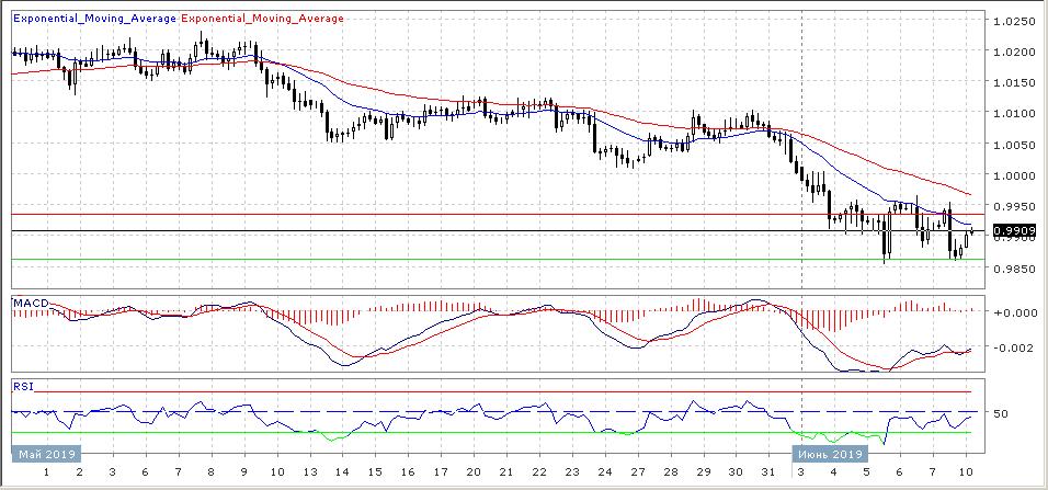 С открытием торгов в Азии в понедельник данная валютная пара торгуется в пределах текущих уровней поддержки на 0.9862 и сопротивления на 0.9934.