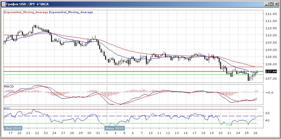 Скользящие средние с периодом 21 и 55 дней замедлились, но сохраняют расхождение, оставаясь выше четырёхчасового графика.