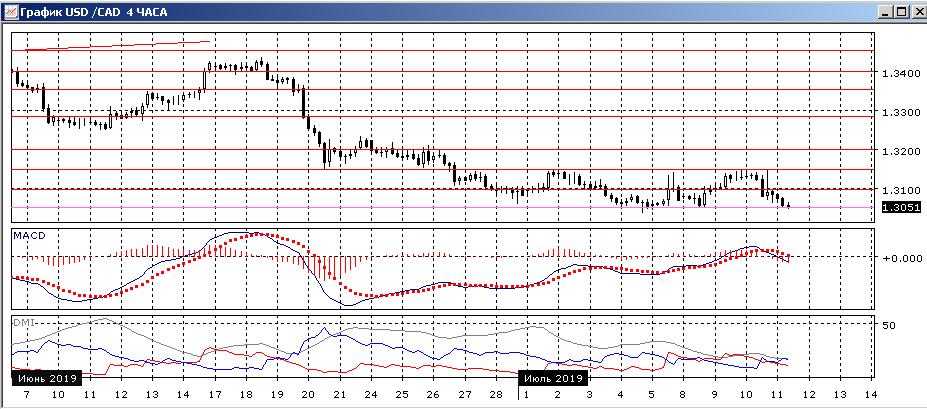 На дневном графике пара снизилась до поддержки на уровне 1,3050. В более широкой перспективе пара остаётся в консолидации 1,3050-1,3150, выход из этой консолидации более предпочтителен вниз, так как ранее тенденцией было снижение. Скорее, стоит действовать в сторону выхода из этой консолидации.