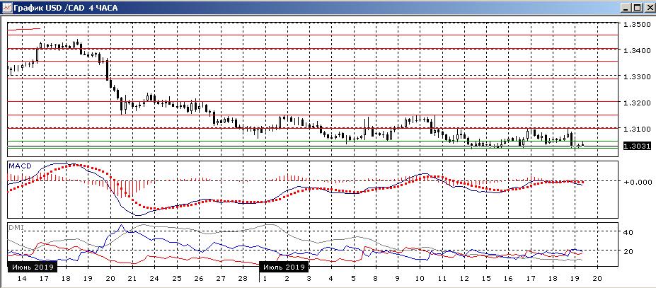 На дневном графике пара снизилась от «круглого» уровня 1,3100 после того, как там около этого уровня было 3 максимума последних свечей. В четверг свеча была близка с «падающей звезде». Пара достигла уровня предыдущего минимума июля. В целом ситуация не изменилась: последовательность снижения относительных максимумов и минимумов пары не нарушена, сохраняется бычье расхождение минимумов пары и гистограммы MACD. По ADX снижение остаётся сильной тенденцией — превышение DM- над DM+ значительное и устойчивое, ADX на относительно высоком уровне. Более вероятно, что снижение продолжится.