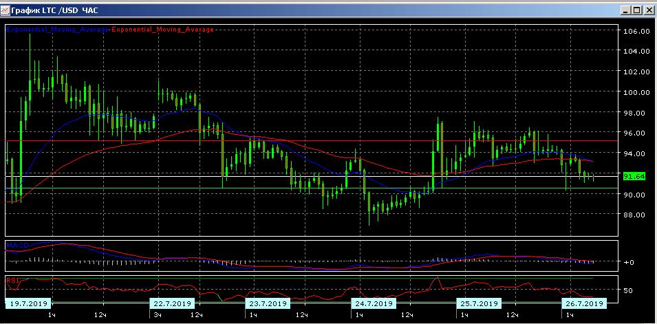 С началом торгов в Азии данная криптовалюта торговалась с небольшим повышением цены, однако по мере развития торгов инициатива перешла в руки к продавцам и теперь торговый инструмент испытывает небольшое давление, однако цена остаётся в пределах текущего уровня поддержки на 90.49 и уровня сопротивления на 95.14.