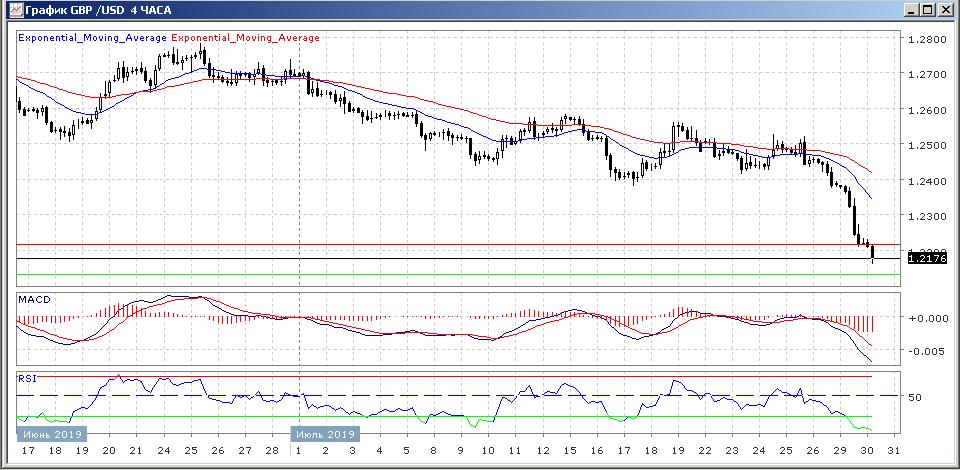 С открытием торгов в Азии во вторник данная валютная пара торгуется с большим понижением котировок и со значительной долей инициативы на стороне медведей. Уровень поддержки Стерлинга определяется в районе отметки 1.2133 (минимум с марта 2017 года) куда он сильно теперь стремится, а уровень сопротивления на 1.2215.