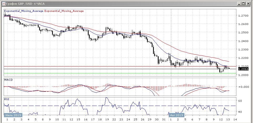 На торгах в Азии во вторник данная валютная пара торгуется с понижением котировок, оставаясь в пределах уровня поддержки на 1.2015 и уровня сопротивления на 1.2095, это EMA21. Стерлинг по-прежнему остаётся под давлением, которое обуславливается больше политическими заявлениями из Лондона и фундаментальными факторами, нежели расчётами технических индикаторов.
