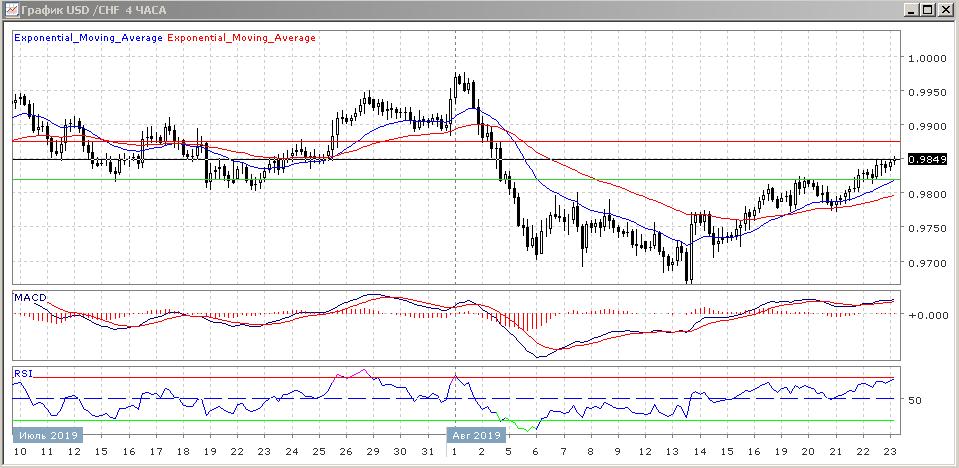 В Азии в пятницу валютная пара USD/CHF торгуется в пределах уровня поддержки на 0.9820 и уровня сопротивления на 0.9875.