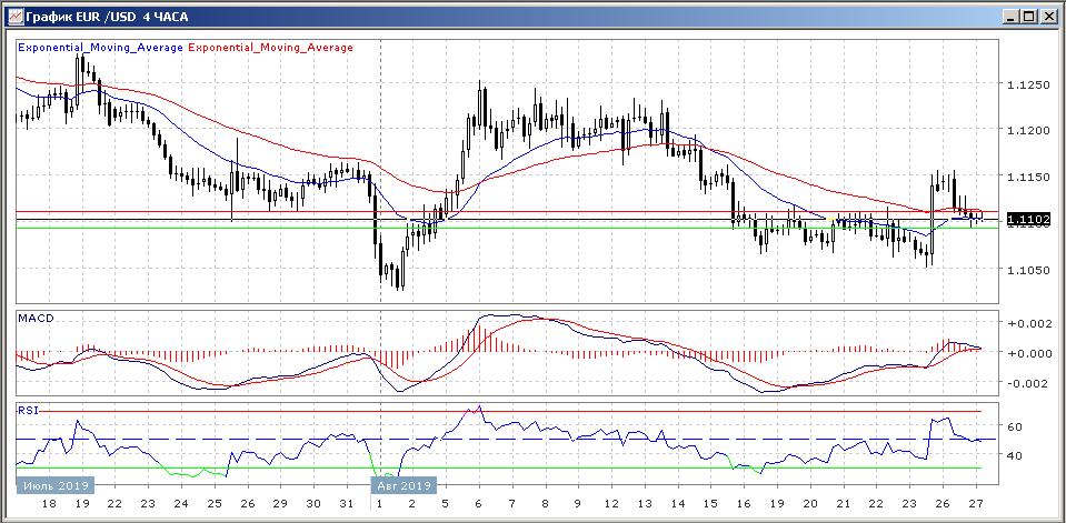 Четырёхчасовой график развивается между скользящих средних, что говорит о предстоящей консолидации цены в краткосрочной перспективе.