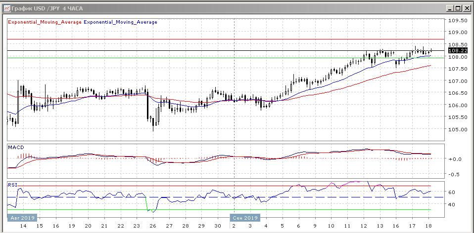 В течение торгов в Азии в среду валютная пара USD/JPY продолжает торговаться с повышением котировок и в пределах уровня поддержки на 107.91 и уровня сопротивления на 108.67.