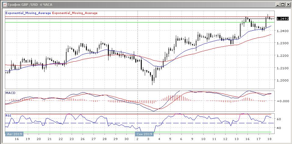 На четырёхчасовом графике скользящие средние с периодом 21 и 55 дней продолжают рост и сохраняют расхождение, что свидетельствует об имеющемся бычьем потенциале.