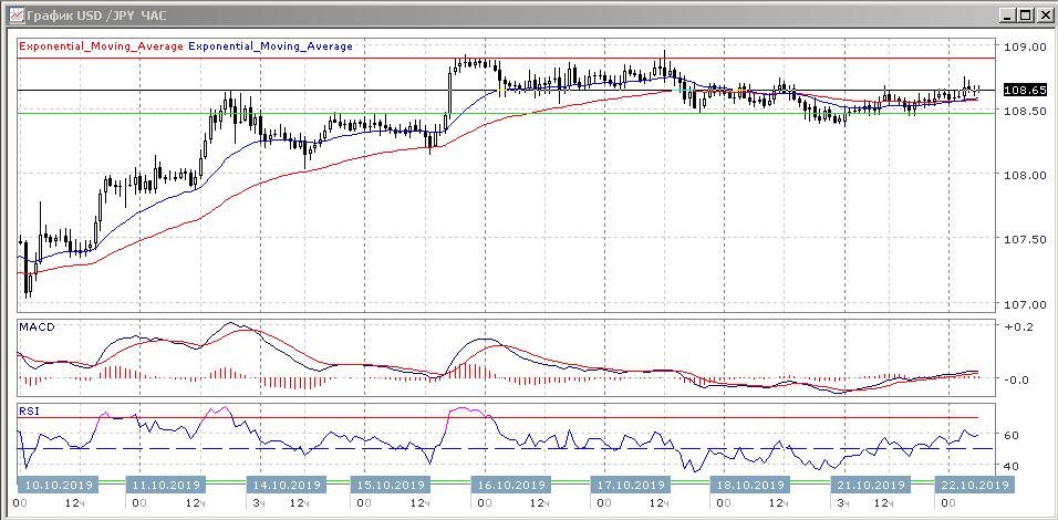 Часовой график прогрессирует чуть выше скользящих средних, что говорит о небольшом преимуществе покупателей на этом рынке.