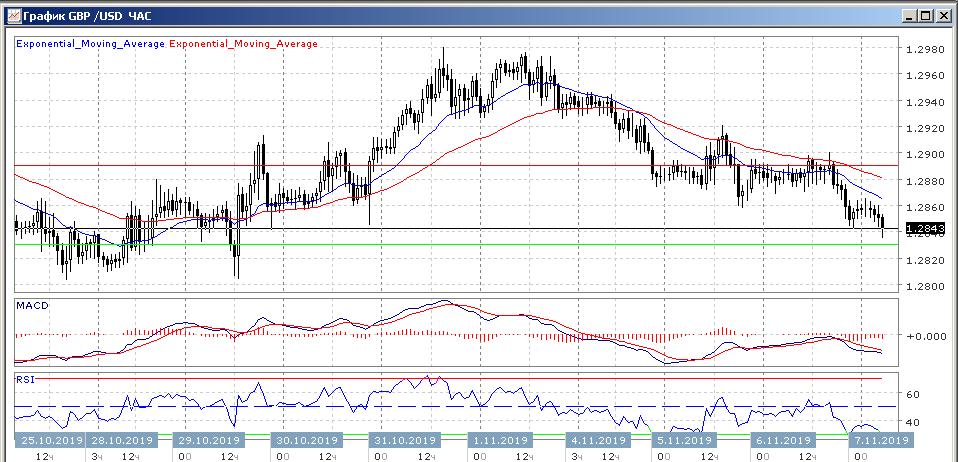 В течение азиатской торговой сессии в четверг валютная пара GBP/USD торгуется с небольшим понижением цены, оставаясь в пределах уровня поддержки на 1.2830 и уровня сопротивления на 1.2890. График рынка прогрессирует ниже скользящих средних, что свидетельствует в пользу продолжения нисходящего движения данного рынка.