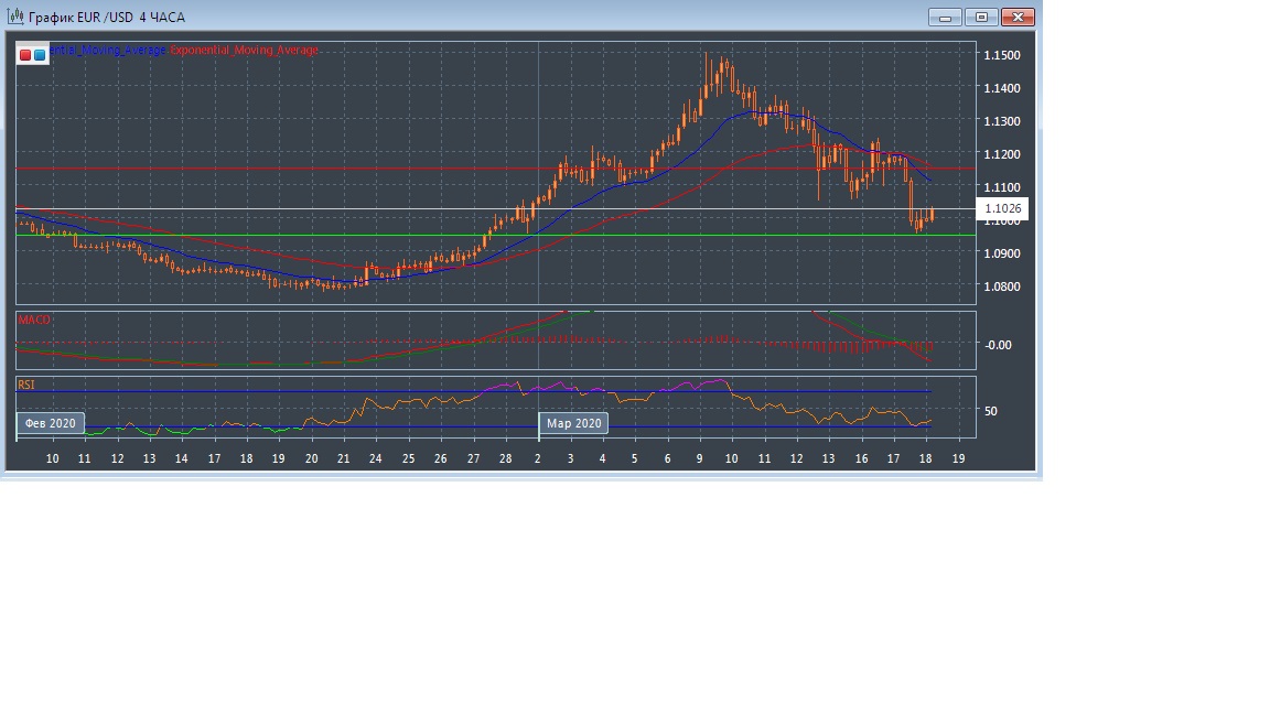 На торгах в Азии в среду валютная пара EUR/USD продолжает торговаться с небольшим повышением котировок, оставаясь в пределах уровня поддержки на 1.0948 и уровня сопротивления на 1.1148. Четырёхчасовой график развивается ниже экспоненциальных скользящих средних, что свидетельствует о медвежьем потенциале данного рынка в краткосрочной перспективе.
