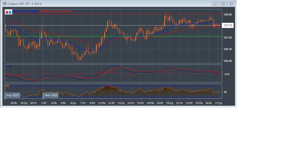В течение азиатской торговой сессии в среду валютная пара USD/JPY торгуется с повышением котировок, оставаясь в пределах уровня поддержки на 107.03 и уровня сопротивления в районе отметки 108.00.