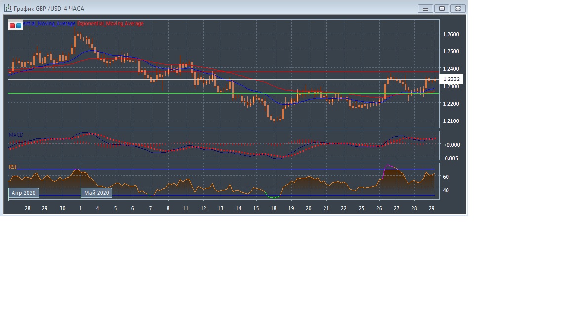 На четырёхчасовом графике скользящие средние развернулись вверх, что так же свидетельствует о бычьей тенденции этого торгового инструмента в краткосрочной перспективе.
