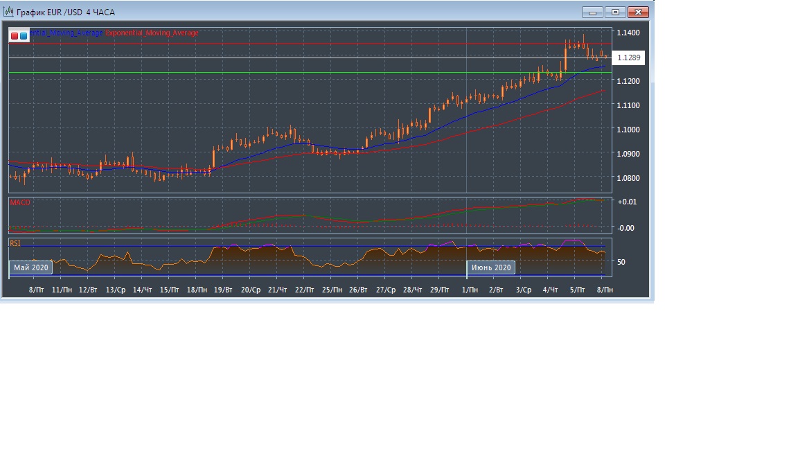 Скользящие средние с периодом 21 и 55 дней продолжают двигаться вверх, увеличивая расхождение, что так же свидетельствует о бычьем потенциале текущей рыночной тенденции в краткосрочной перспективе.