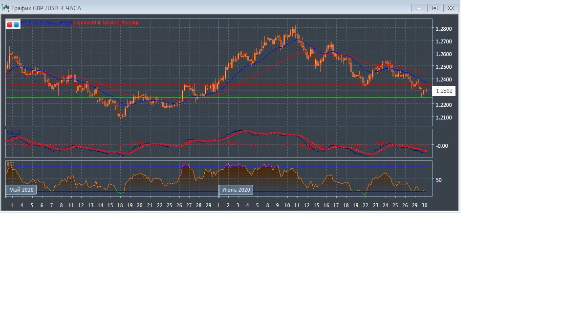На четырёхчасовом графике скользящие средние продолжают двигаться вниз и ускоряются, увеличивая при этом своё расхождение, что свидетельствует в пользу медвежьего настроя участников этого рынка в краткосрочной перспективе.