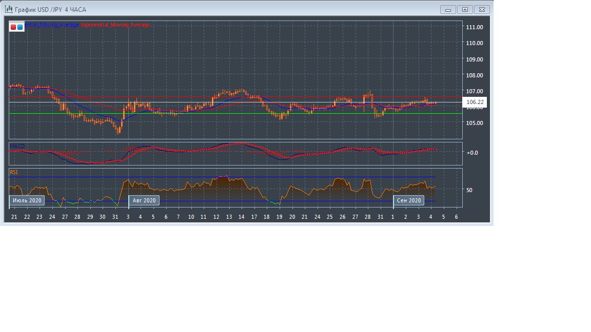 Скользящие средние с периодом 21 и 55 дней замедлились и двигаются вдоль своей оси сохраняя слабое расхождение, что чуть-чуть свидетельствует в пользу бычьего сценария данного рынка в краткосрочной перспективе. Четырёхчасовой график прогрессирует в области чуть выше экспоненциальных скользящих средних и это подтверждает небольшой бычий потенциал данного рынка в краткосрочной перспективе.
