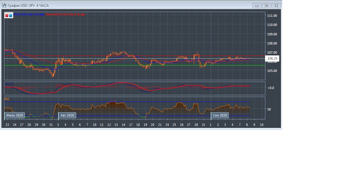 Скользящие средние с периодом 21 и 55 дней замедлились и двигаются вдоль своей оси сохраняя слабое расхождение, что чуть-чуть свидетельствует в пользу бычьего сценария данного рынка в краткосрочной перспективе. Четырёхчасовой график прогрессирует в области чуть выше экспоненциальных скользящих средних и это подтверждает небольшой бычий потенциал данного рынка в краткосрочной перспективе.