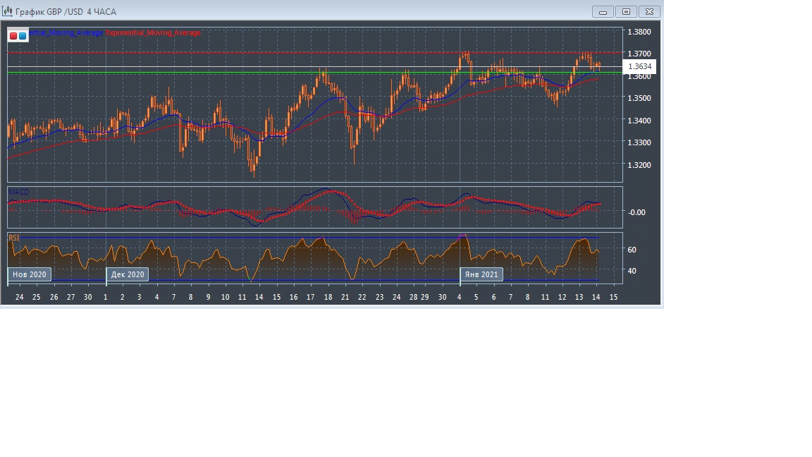 С открытием торгов в Азии в четверг данная валютная пара торгуется с понижением котировок, оставаясь в пределах уровня поддержки на 1.3608 и уровня сопротивления на 1.3701, где график рынка прогрессирует в области выше экспоненциальных скользящих средних с периодом 21 и 55 дней, демонстрируя потенциал быков, так в краткосрочной перспективе.
