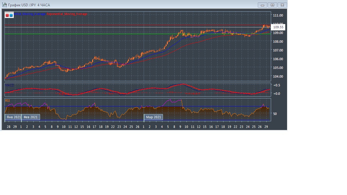 Скользящие средние с периодом 21 и 55 дней чуть замедлились, но продолжают движение вверх, сохраняя небольшое расхождение, что является признаком ослабевающего бычьего тренда данного рынка в краткосрочной перспективе. Четырёхчасовой график прогрессирует чуть выше экспоненциальных скользящих средних, подтверждая ослабление восходящего потенциала этого рынка в краткосрочной перспективе.