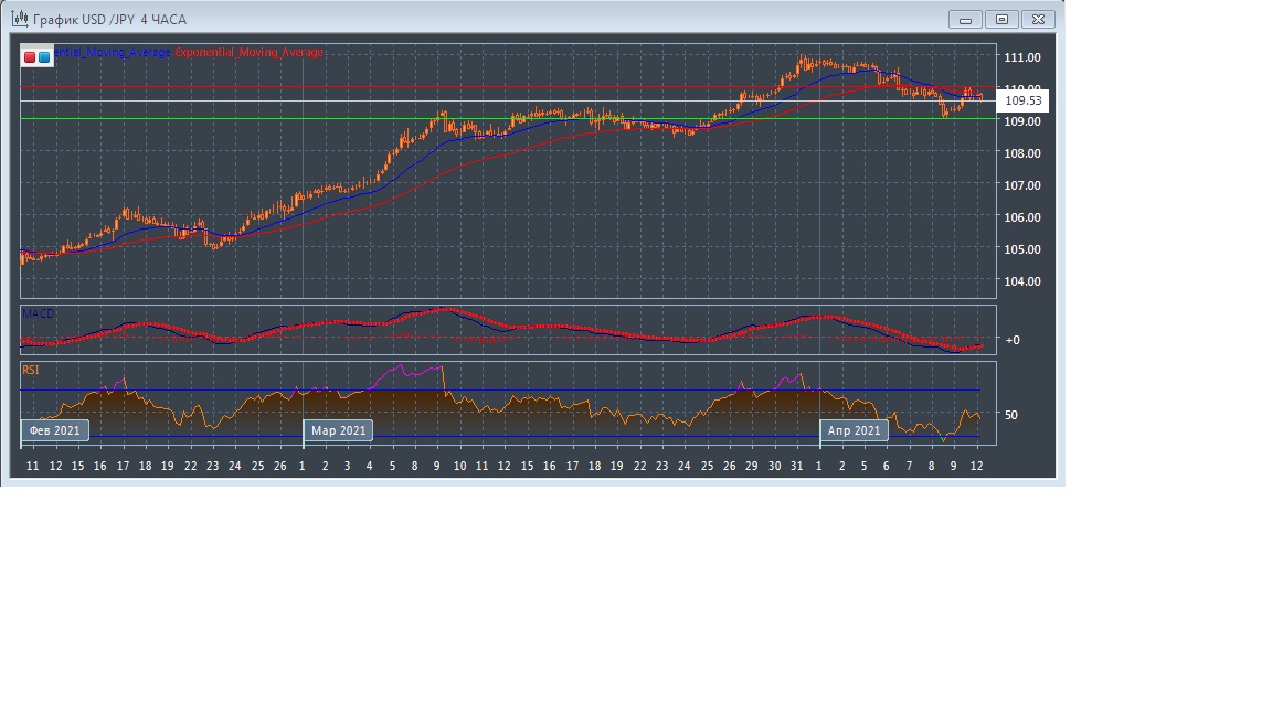 Скользящие средние с периодом 21 и 55 дней разворачиваются вверх, сокращая расхождение, что демонстрирует укрепление американского доллара и грядущую смену тренда данного рынка в краткосрочной перспективе. Четырёхчасовой график прогрессирует ниже экспоненциальных скользящих средних, что говорит о пока что сохраняющемся потенциале медведей в краткосрочной перспективе.