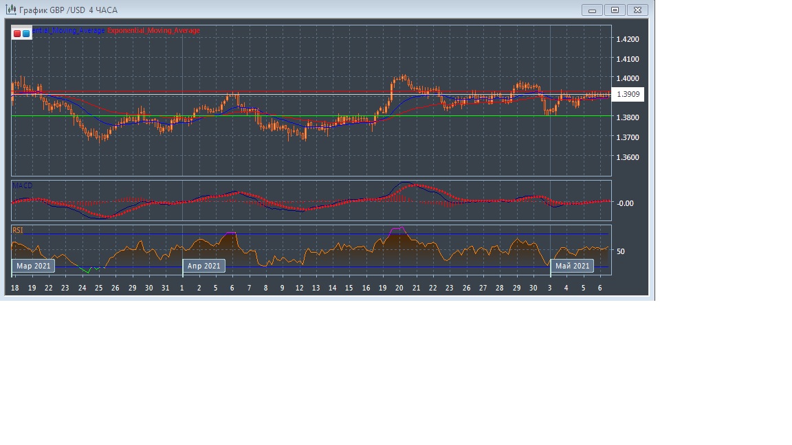 На четырёхчасовом графике скользящие средние замедлились и движуться вдоль оси сократив расхождение до минимума, что так же свидетельствует о нисходящем потенциале на данном рынке в краткосрочной перспективе.