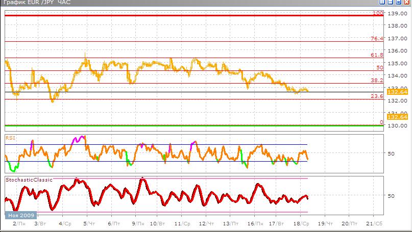 Технические индикаторы показывают продажу Stohastic пересекся скользящими средними и пошел вниз, а RSI также указывает вниз после разворота. Хотя продажа не довольно четкая,т.к. происходит возле уровней в 50% по индикаторам, а не их максимумов.