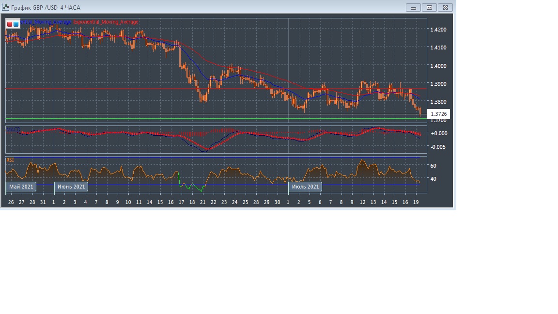 На четырёхчасовом графике скользящие средние развернулись вниз и продолжают снижаться после формирования сигнала на продажу, увеличивая расхождение, что свидетельствует в пользу нисходящего потенциала данного рынка в краткосрочной перспективе.
