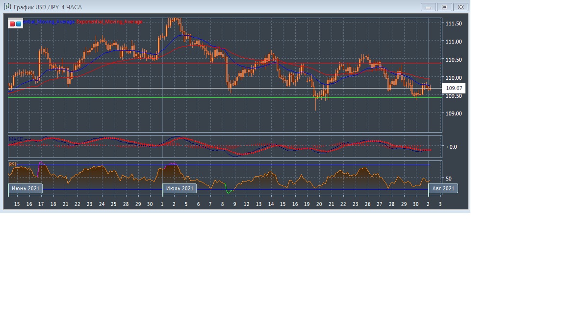 Скользящие средние с периодом 21 и 55 дней продолжают движение вниз с небольшим ускорением и увеличивая расхождение, что демонстрирует укрепление медвежьих тенденций на этом рынке в краткосрочной перспективе. Четырёхчасовой график остаётся чуть ниже экспоненциальных скользящих средних, что так же говорит нам о нисходящем потенциале этого рынка сегодня.