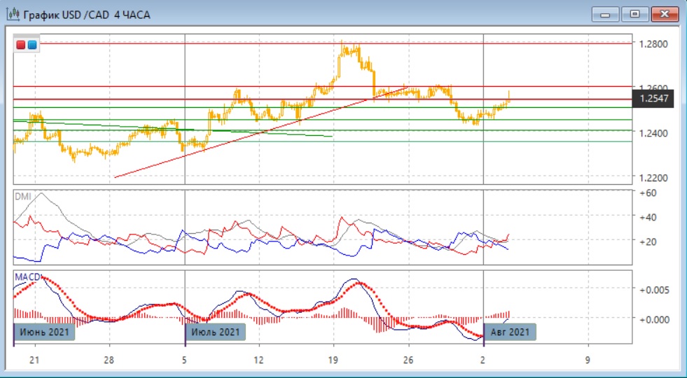 На четырёхчасовом графике пара выросла после приближения к уровню 1,2400, но в более широкой картине она осталась в диапазоне больше части июля. Сейчас она приблизилась к сильному сопротивлению на 1,2600, от которого происходит откат. Картина вершины в середине июня остаётся не нарушенной, и сейчас кажется более вероятным, что пара будет возвращаться к 1,2400.