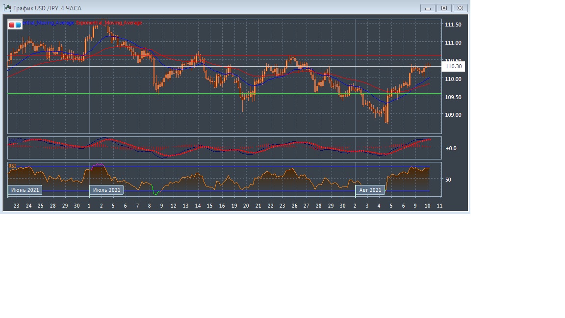 Скользящие средние с периодом 21 и 55 дней развернулись вверх и растут ускоряясь и увеличивая расхождение, что демонстрирует развитие бычьей тенденции на этом рынке в краткосрочной перспективе. Четырёхчасовой график остаётся выше экспоненциальных скользящих средних, что так же говорит нам о восходящем потенциале этого рынка сегодня.