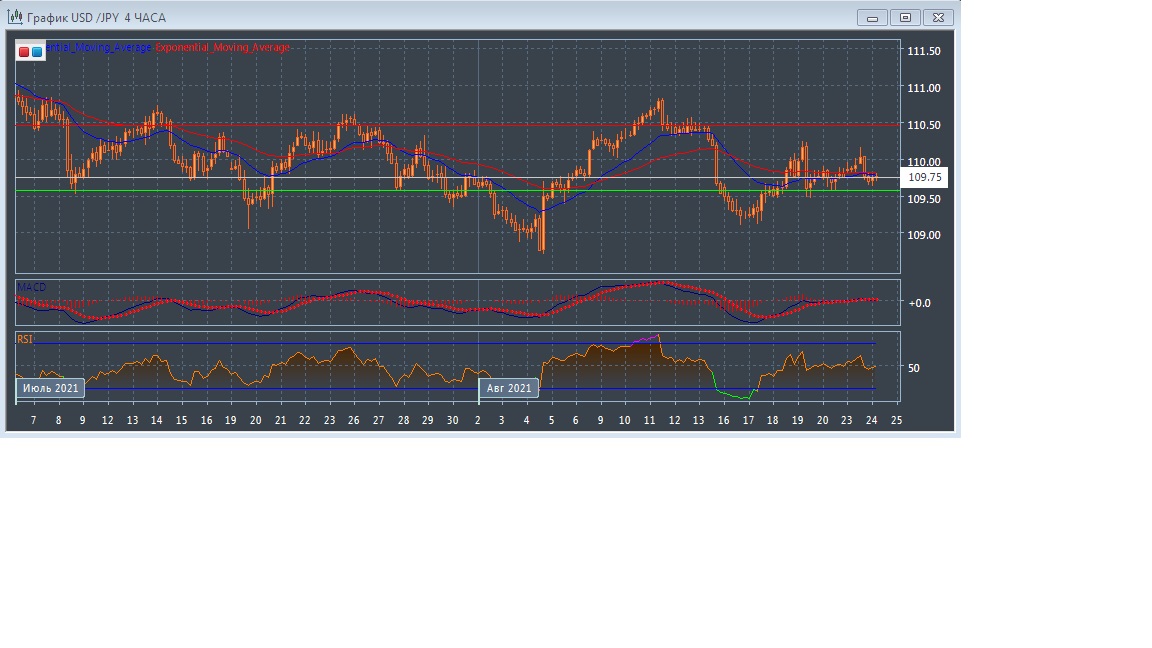 Скользящие средние с периодом 21 и 55 дней консолидируются, сокращая расхождение и зпиедлились, что позволяет ожидать формирование нейтральной тенденции на этом рынке в краткосрочной перспективе. Четырёхчасовой график пока остаётся чуть ниже экспоненциальных скользящих средних, что может стать начатком медвежьего тренда на этом рынке в краткосрочной перспективе.