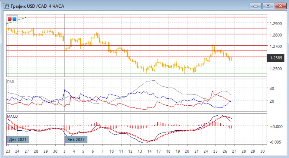 На дневном графике пара снизилась от "круглого" уровня 1,2700 и закрытие в среду может быт ниже следующего "круглого" уровня 1,2600. Образование большой верхней тени у свечи в понедельник ниже 1,2700, откат ниже минимума декабря (у 1,2600) скорее являются медвежьими сигналами для пары. Сильный импульс роста не получил развития. Снижение от 1,2700 можно рассматривать и как коррекцию к волне роста, но в более широкой картине тенденция снижения сохраняется.