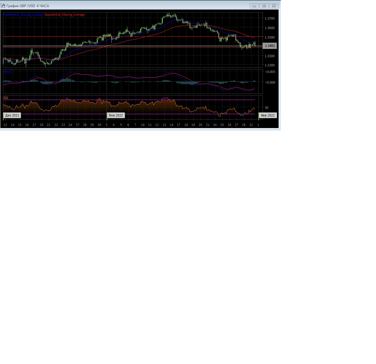 На четырёхчасовом графике скользящие средние продолжают движение вниз и медленно увеличивают расхождение, что так же свидетельствует в пользу медвежьего тренда на этом рынке.