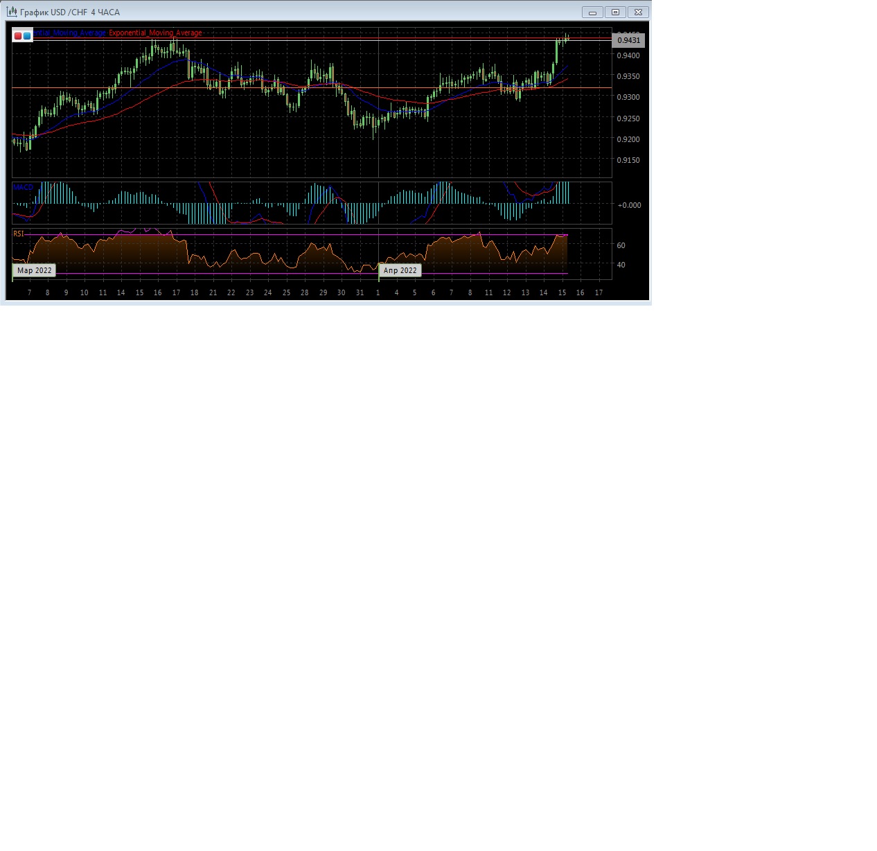 На четырёхчасовом графике скользящие средние с периодом 21 и 55 продолжают движение вверх увеличивая расхождение, что демонстрирует укрепление восходящего тренда на этом рынке. Четырёхчасовой график котировок развивается значительно выше экспоненциальных скользящих средних, свидетельствуя о наличии бычьего потенциала данного рынка в краткосрочной перспективе.