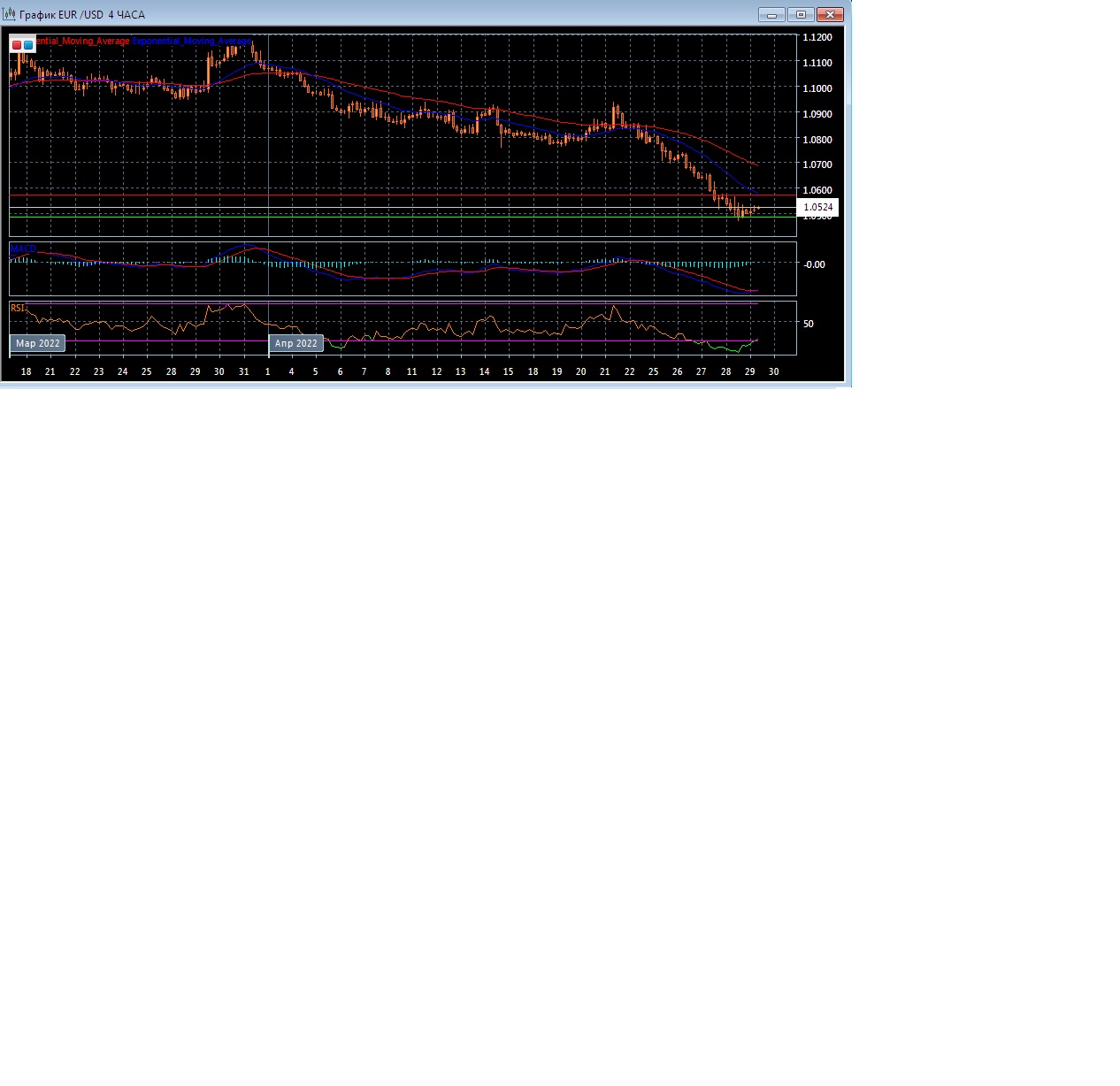 На торгах в Азии в пятницу валютная пара EUR/USD торгуется с повышением котировок, но оставаясь в пределах текущего уровня поддержки на 1.0486 при уровне сопротивления на отметке 1.0572. Четырёхчасовой график прогрессирует ниже экспоненциальных скользящих средних, демонстрируя нисходящую тенденцию на данном рынке в краткосрочной перспективе.