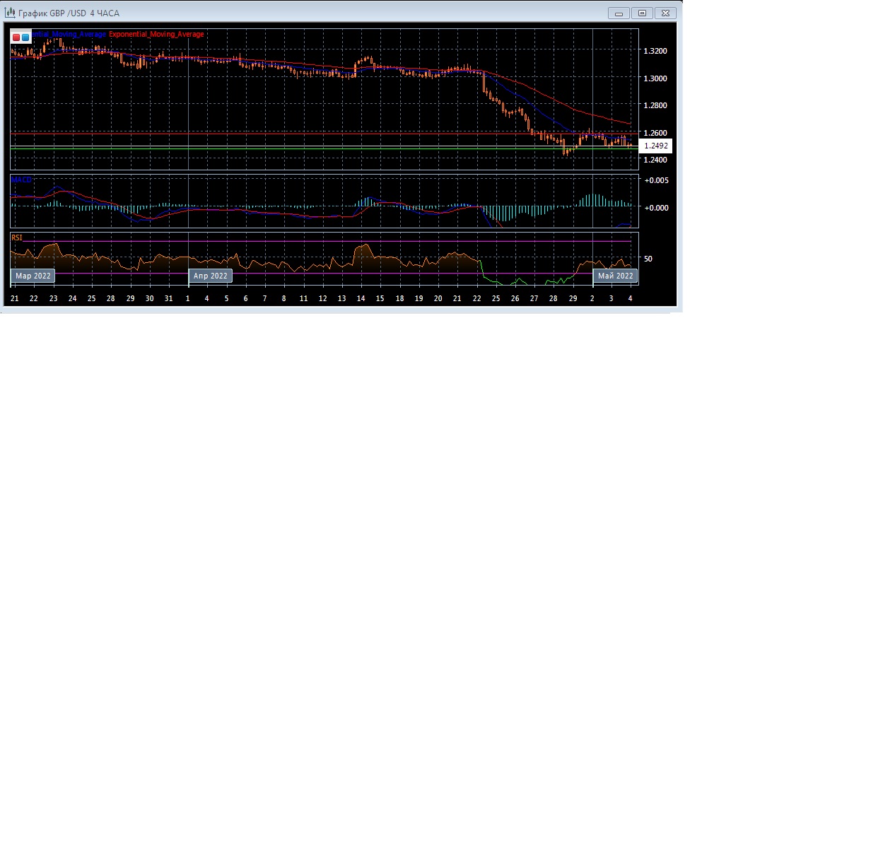 На четырёхчасовом графике скользящие средние продолжают движение вниз, сохраняя расхождение, но чуть замедлились, что всё-же говорит в пользу нисходящей тенденции.