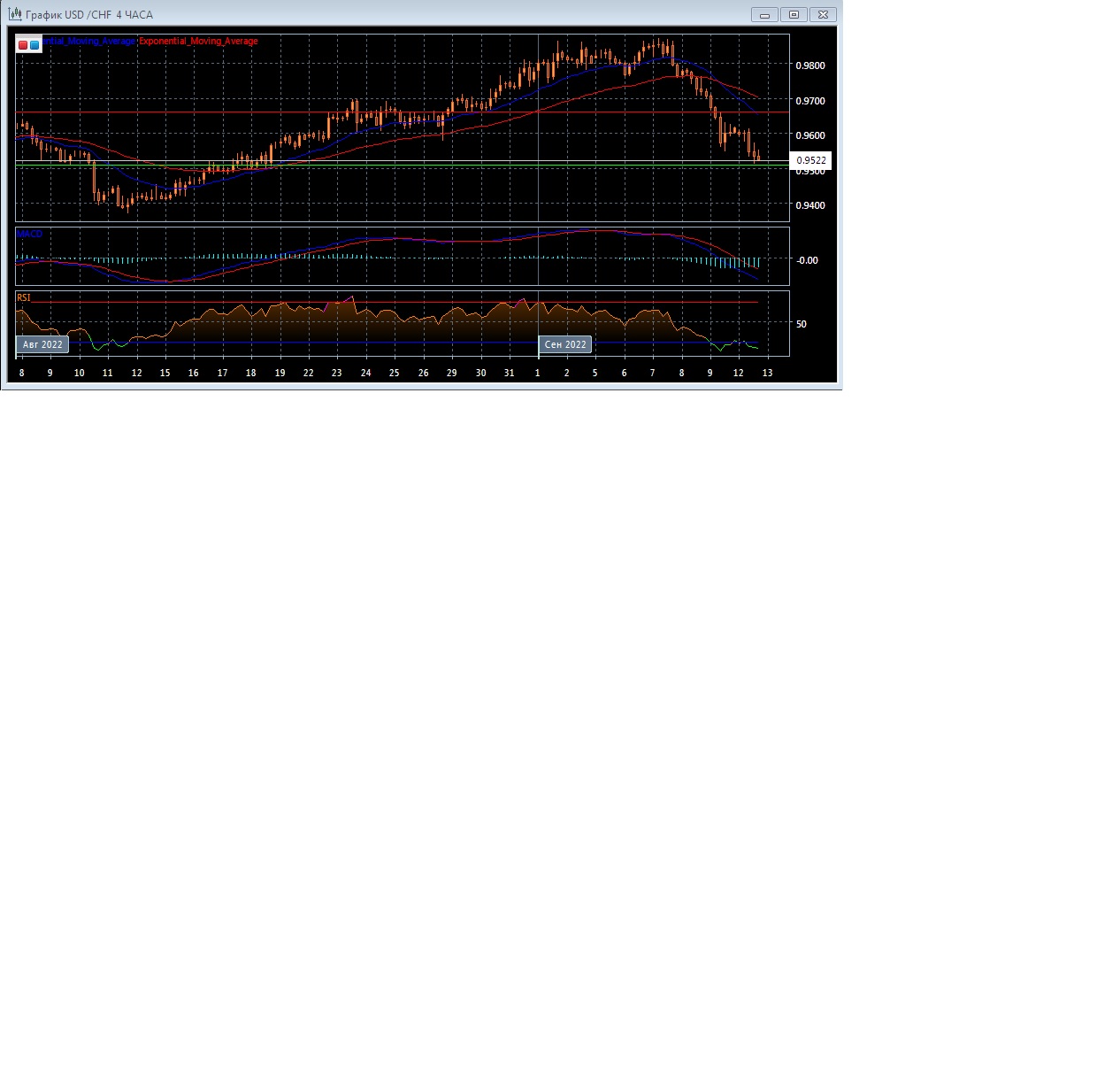 На четырёхчасовом графике скользящие средние с периодом 21 и 55 развернулись вниз, ускорились и увеличивают расхождение, что говорит в пользу нисходящего тренда на этом рынке. Четырёхчасовой график котировок прогрессирует значительно ниже экспоненциальных скользящих средних, что так же является свидетельством в пользу медведей данного рынка в краткосрочной перспективе.