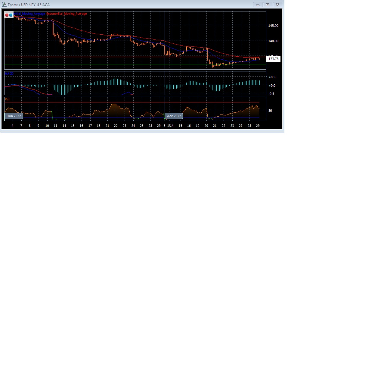 Скользящие средние с периодом 21 и 55 дней разворачиваются вверх, ускорились и сокращают расхождение, демонстрируя смену тенденции в пользу быков. Четырёхчасовой график прогрессирует между экспоненциальных скользящих средних, что свидетельствует о равнозначном потенциале данного рынка, и немного в пользу восходящего движения этого рынка в краткосрочной перспективе.