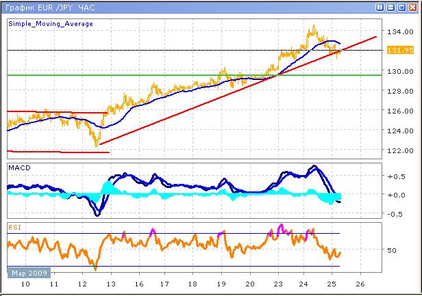 Пара преодолела уровень сопротивления и продолжает рост, при этом, вероятно, тенденция продолжится в течение предстоящих нескольких торговых дней. Тем не менее, совершенно очевидно, что рост замедлился, и быки демонстрируют признаки слабости. На этой неделе пара начнет снижаться, поскольку падение йены против доллара исчерпало свой потенциал. В настоящий момент индикаторы начали сигнализировать о росте сил покупателей, что совершенно сочетается с предполагаемой динамикой смежных пар, usd/jpy и eur/usd. На часовом графике осциллятор MACD подает сигнал на покупку, гистограмма соответствующим образом пересекает скользящие средние индикатора. В то же время, график индикатора RSI коснувшись границы области перепроданности, отразился от нее, и начал рост. Занятие длинных позиций не предполагает длительного нахождения в рынке, поскольку в среднесрочном плане пара находится под давлением.